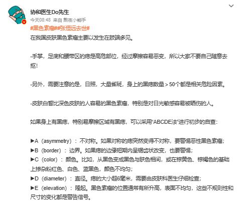 张恒远去世的消息很快引爆热搜,许多人也把目光盯向了导致张恒远离世的罪魁祸首——黑色素瘤。