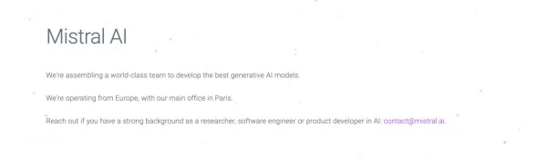 Mistral计划利用新资金组建一个他所说的“世界级团队”,来创建“最好的开源模型”,据LinkedIn信息,该公司已开放招聘需求。在最近的一则招聘广告中,该公司将自己描述为“一家在生成人工智能领域雄心勃勃的公司”,并表示其团队目前由 12 人组成。“[Mistral] 旨在使 AI 成为明天互联网和软件的引擎,并 [成为] 来自欧洲总部AI 领域的技术领导者,”该广告表示。“它的创始人和早期员工都是生成模型领域中,最具影响力的年轻技术创造者。”