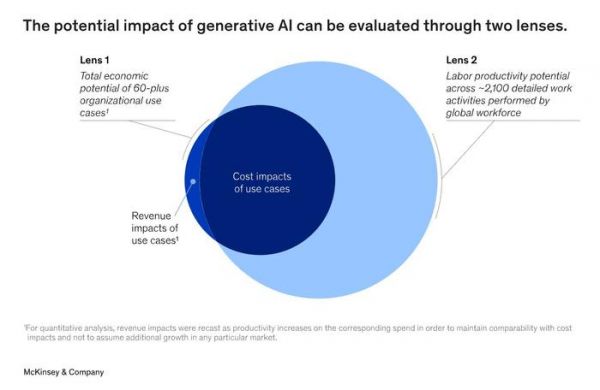 ▲ 图源 麦肯锡报告还显示当下 AI 每年可能为全球经济增加“2.6 万亿美元到 4.4 万亿美元”的价值,相当于在地球上新增一个国家的 GDP 水准。