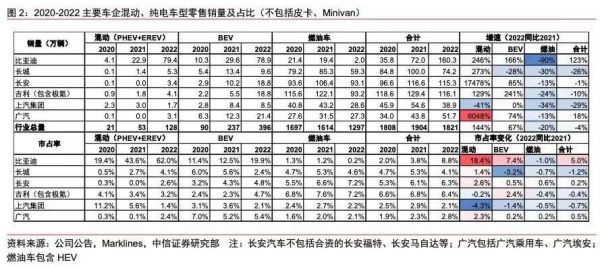 2022年,长城汽车逐渐反应过来,并力推哈弗新能源转型。同年8月和9月,作为哈弗品牌首款新能源车型,第三代哈弗H6 DHT HEV、PHEV相继上市。不过,哈弗新能源转型的首战最终以失败告终。2022年,这两款车的零售销量分别为2041辆、3174辆,同期,比亚迪宋Plus EV与宋Plus DM-i的销量分别为6.7万辆、38.8万辆。对此,中信证券认为,哈弗H6 PHEV无法上量的主要原因不是技术,而是渠道与营销策略失当。