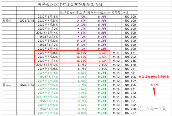 会议落地之后,两年美债维持在4.7%附近,这个利率所对应的加息前景是:a、未来三次会议25+0+25;b、高点位置5.75%;c、2024年3月降息;d、每次降息25bp。