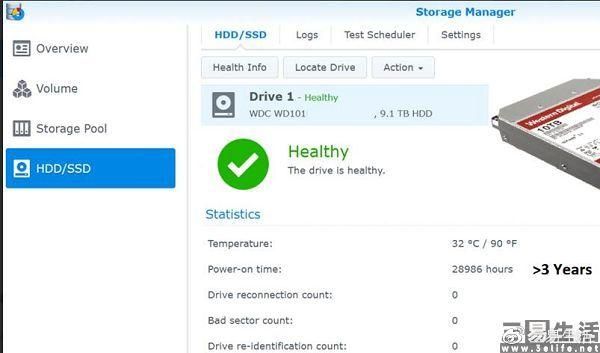 最近有部分使用群晖NAS的用户突然发现,他们使用的西部数据(下文简称为西数)硬盘一旦开机时间达到三年,就会在群晖DSM上出现“警告”标记,并显示“在硬盘的整个寿命中,该硬盘已经积累了大量的开机时间。请考虑尽快更换该硬盘”,并且建议用户进行S.M.A.R.T检测。由于反馈这一现象的用户相当多,也使得许多用户在互相探究问题的原因时发现了一些蹊跷。