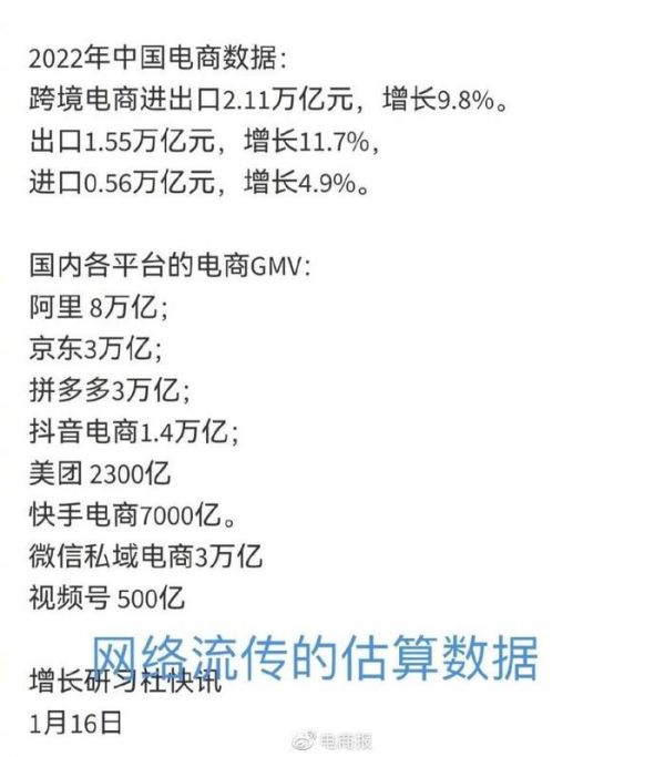有意思的是,年初时,网上曾流传的一份国内各平台的电商GMV估算数据,里面专门提到了微信私域电商GMV达到了3万亿。