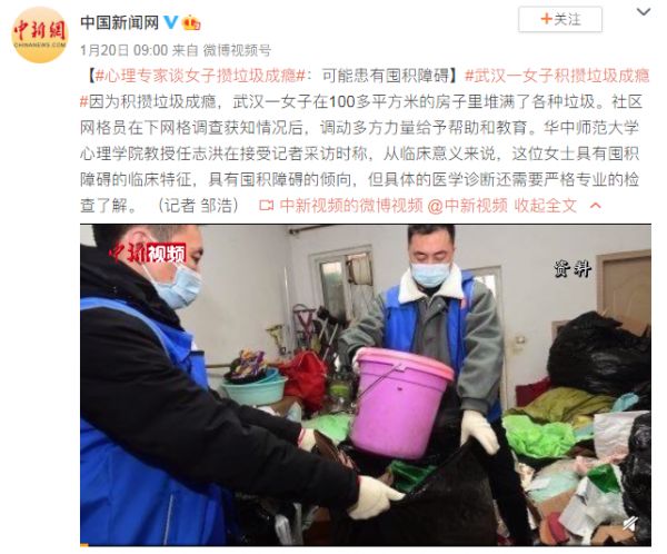 武汉某女子攒垃圾成瘾,具有囤积障碍的临床特征。丨截图