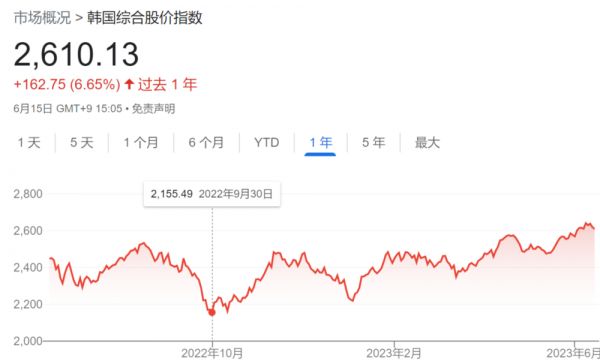 去年9月开始,韩国股市触底反弹,指数从当时的2155一直反弹到如今2610,今年以来更是同比上涨10.51%。
