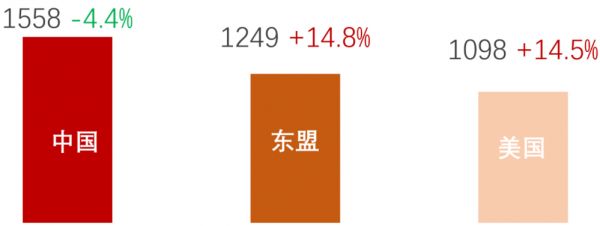 韩国是2022年2月1日对该协定生效,生效后,韩国对东盟10国的出口额迅速增长,2022年达到1249.5亿美元,同比增长 14.8%,东盟跃升为韩国第二大出口地区,仅次于中国。
