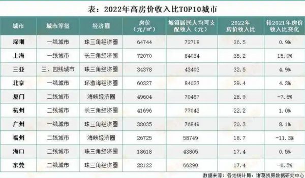 那我们是多少呢?第一财经曾在2022年统计过100座国内城市的房价收入比是12.4,国内最高的是深圳36.5,其次上海35.2,三亚32.5,我所在的广州是20.3。