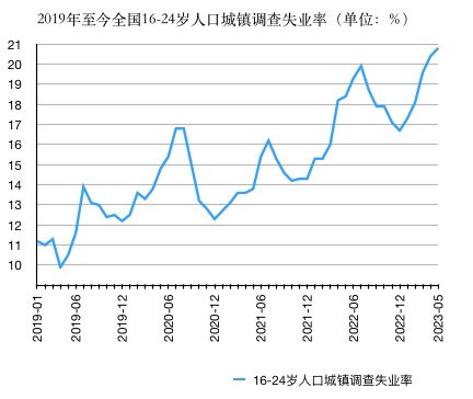 5月,16-24岁人口城镇调查失业率(以下简称“青年失业率”)达20.8%。自4月青年失业率历史首次突破20%以后,再次创下自2018年1月此数据定期公布以来的新高。