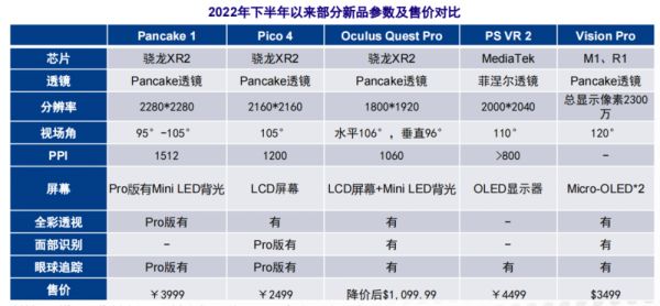 VR最新产品配置信息 来源 / 中国银河证券研究院