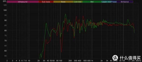 这里我们要说明的是,低频部分受到房间模式的强烈影响,所以需要更多解读。你看到的低频峰谷是声音在房间内不断反射叠加的结果,但是这里需要注意,8320的官方频响中低频基本平直,杰士 RB-61 II与8320的低频部分都是全指向的,所以低频声波会同时受到房间的影响。如果杰士 RB-61 II的低频也趋于平直的话,那么显然两者的低频表现虽然峰谷不断,但是却会趋同。不过从测量结果上看,杰士 RB-61 II的低频要比8320“凸起”一些,这显然跟杰士 RB-61 II的产品定位有关。同时作为6.5寸音箱,杰士 RB-61 II的低频下潜也理所当然地超越了8320一个等级,杰士官方给出的低频下潜数据是45Hz -6dB,但是从实际表现来看,在这个房间里杰士 RB-61 II的低频下潜甚至可以摸到30Hz附近,这显然是无源音箱没有给低频做高通的原因。