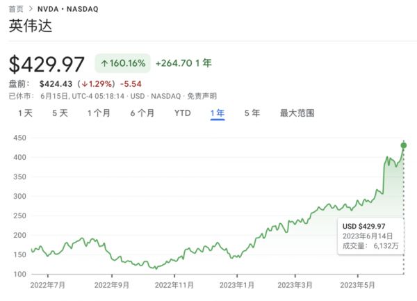 ▲ 英伟达近1年市值变化。图片来源:Google财经