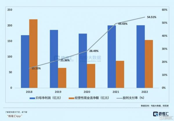 可即便如此,对于分红公司出手一直大大方方。22年的股利支付率高达54.51%,给自己打上了低增长高股息的烙印。