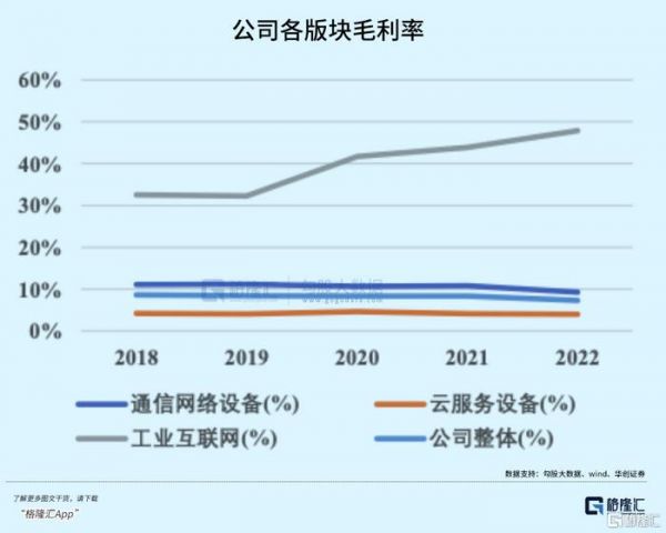 公司的主营业务,聚焦在通信及移动网络设备,云计算、工业互联网三大板块。