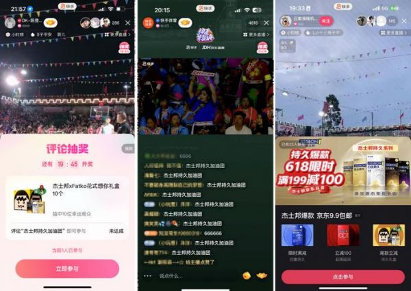 而在效果方面,快手则是通过直播间营销组件,提升用户互动体验和品牌营销效果。官方直播间通过小铃铛玩法,引导用户一键跳转至京东健康618主会场,打通销售转化通路,助力京东健康实现品效销协同突破;通过幸运星玩法,以抽奖奖品、评论口令等方式,助力杰士邦提升粉丝增长与转化变现。