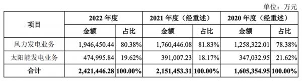 透过招股书,目前华电新能的主营业务为以风力发电、太阳能发电为主的新能源项目的开发、投资和运营,主要产品为电力输出。