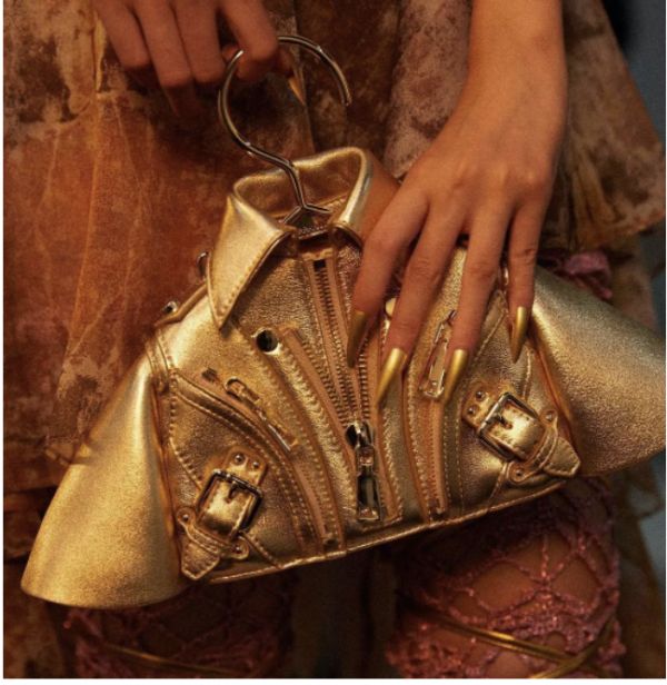 MARRKNULL的衣架包是这个论断的绝佳写照。那是他们在自我表达最旺盛的时期产出的作品,灵感来自时天的县城记忆。90年代,家家户户在家门口拉条绳子晾衣服,衣架上的衣服向上挥舞的那一瞬间,很像一只包。于是他们设计出了衣架包。