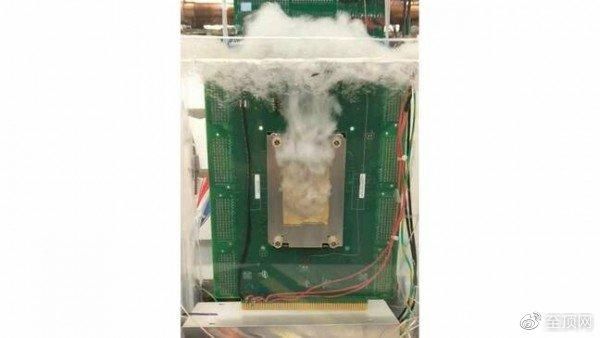 但这一次,英特尔又将目光投向了双相变浸入式冷却散热方案。这款冷却设备经过精心设计,通过在芯片工作温度下处于沸腾状态的专用冷却液带走热量,再让蒸汽凝结并以雨滴般的形式重新落回储液箱。