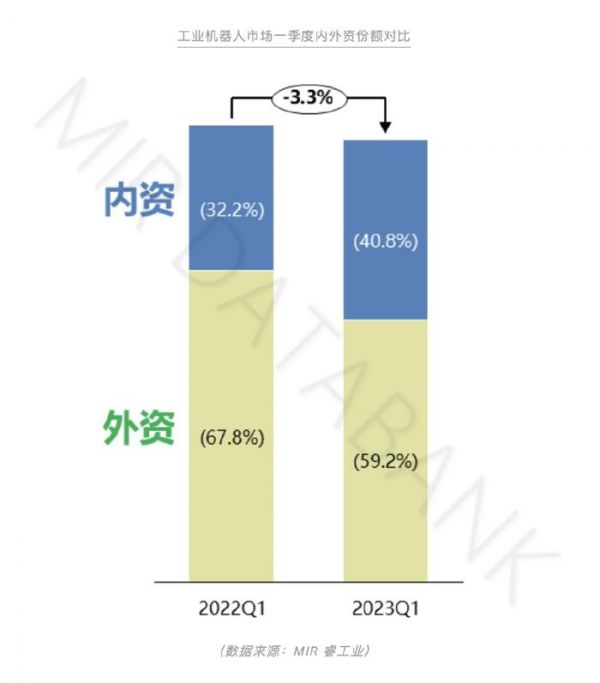 (数据来源:MIR DATABANK:资料来源:5.11微信公众号文章《工业机器人一季度监测:内资厂商单季市场份额首次突破40%|MIR DATABANK》)