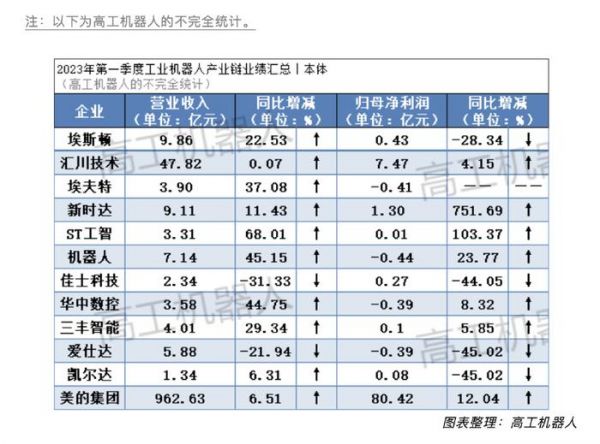 具体来看,一季度营业收入正增长的企业有10家,分别为埃斯顿、汇川技术(工业机器人业务)、埃夫特、新时达、ST工智、机器人、华中数控、三丰智能、凯尔达、美的集团(机器人与自动化系统业务);而归母净利呈现正增长的企业仅为5家,分别为汇川技术、新时达、ST工智、三丰智能、美的集团。埃斯顿和埃夫特等均出现增收不增利的情况。