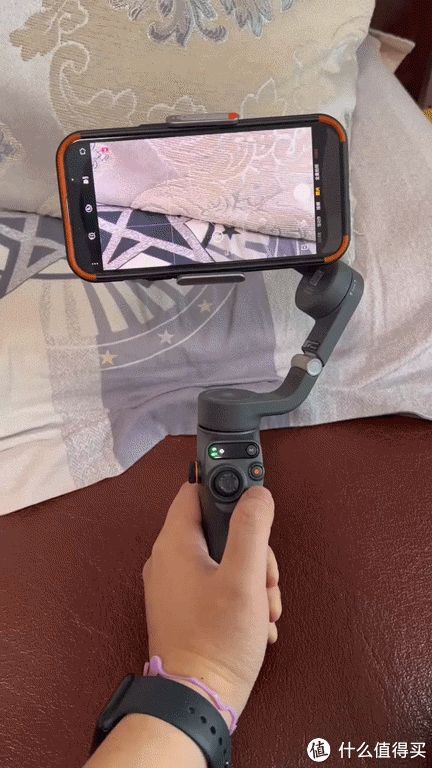 大疆OM6一共有4个按键和1个滚轮和1个方向,按键本身就完成了开关、模式切换、前后摄像头切换与开启自动跟随模式。再叠加模式键双击切换手机方向,模式键三击切换照片与摄影,扳机键双击云台回中,扳机按住云台锁定,扳机短按后长按快速跟随……可以说只要提前设置好美颜等功能,并且ISO、EV等参数是自动的情况下,单手即可完成拍摄。非常方便。