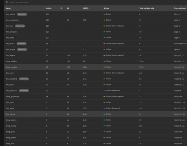 IBM已上线的量子计算系统,433量子比特的鱼鹰处理器首次上线(来源:https://quantum-computing.ibm.com/)