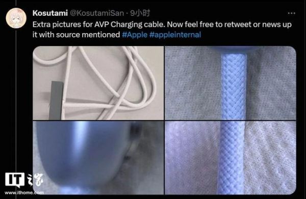 ▲ 图源 Kosutami 曝光的苹果 Vision Pro 头显用充电线缆IT之家根据业界规则推测,该厂商较有可能率先从苹果处获得了资料。但是,考虑到苹果通常只在产品上市前三至六个月向第三方厂商开放新产品规格信息,且更注重于“贝尔金”此类密切合作的第三方配件厂商,因此也不排除 MOMAX 是购买了流出的充电线缆,并进行逆向分析得知相关信息的可能。