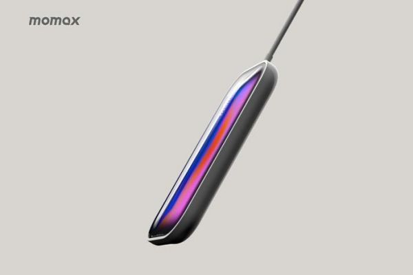 从官方渲染图中可以看到,相比苹果原厂外接电池采用阳极氧化铝原色风格,MOMAX 外接电池表面采用类似 Vision Pro 头显外屏的镜面设计,内部流溢着蓝紫彩色,类似苹果 iPhone X 海报的风格。
