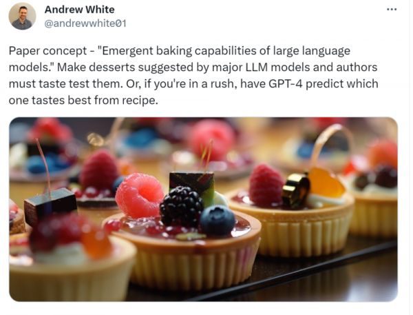 有网友在推特上打趣地说:“这是LLM和作者推荐必吃的甜点,如果你赶时间,让GPT-4预测以下哪种味道最好。”