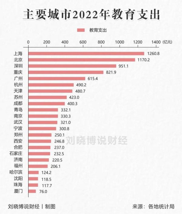 2023年,深圳将1000多亿元砸在了教育支出上,占全市财政收入的1/5强,总量超过广州,位列全国第三位。