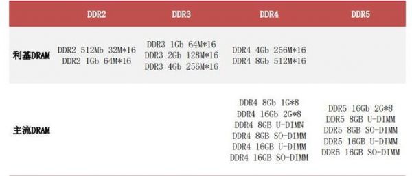 利基与主流DRAM的产品区别 来源:DRAMeXchange,中泰证券研究所