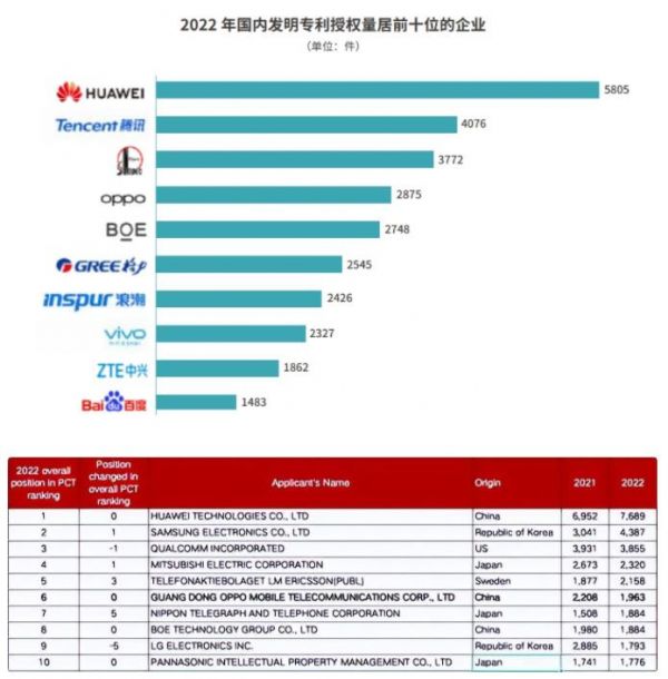 目前,OPPO已在全球范围内40多个国家及区域布局专利。根据世界知识产权组织(WIPO)的数据,2022年,OPPO以1963件PCT国际专利申请量位列全球第六位,这也是OPPO连续四年跻身全球前十。 据统计,2022年,OPPO的欧洲专利申请量位列中国专利权人第二位、全球第十七位,美国专利授权量位列中国权利人第四位。