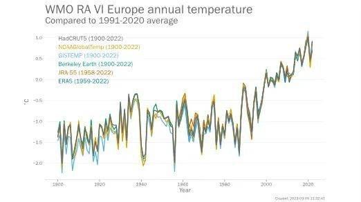 CS3也在6月19日的发给《每日经济新闻》记者的邮件中也指出,欧洲是全球变暖最快的大陆,该组织的报告显示,自上世纪80年代以来,欧洲的变暖速度是全球平均水平的两倍,这对该地区的社会经济结构和生态系统产生了深远的影响。2022年,欧洲的平均温度比《巴黎协定》所使用的工业化前平均值高出约2.3℃。