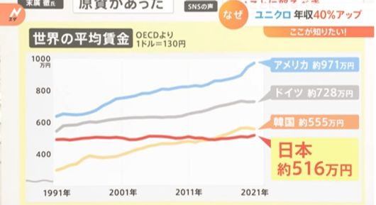 目前,日本工资水平处于发达国家中的“吊车尾”位置,甚至还不如隔壁的“老冤家”韩国。