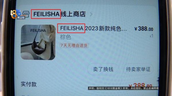商品名和店铺名里有一串英文字母(FEILISHA)。商品描述里写着:“采用定制面料,独立渠道,已和欧美地区众多明星KOL达成战略性合作”。KOL是意见领袖的意思,也可以理解为网络达人。这个包价格388元,5月31号从东莞发货,6月5号送达,叶女士看了很不满意。