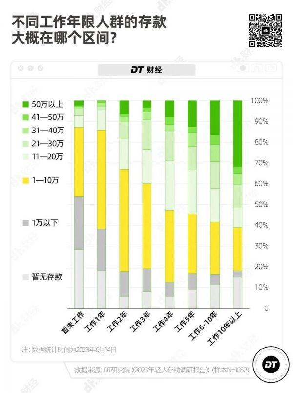 工作10年以上的人中,就有15.2%的人“暂无存款”,还有接近4成人存款在10万以内。