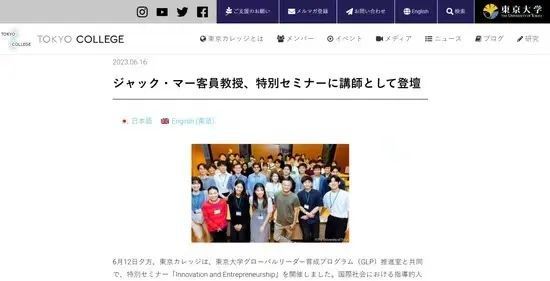 今年5月1日,日本东京大学发布消息称,聘请阿里巴巴集团创始人马云为“东京学院(Tokyo College)”的客座教授。