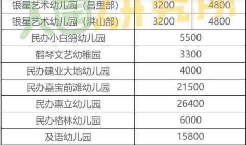 上海浦东新区部分幼儿园收费标准(元/月)