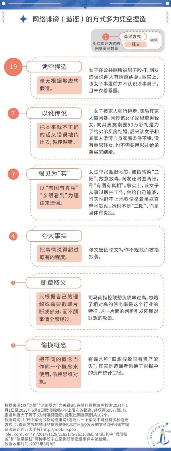 网络诽谤的案例占到了总数的三成以上,诽谤式人身攻击、身份诬陷等网暴言论也不在少数。流言如刀,三人成虎、曾参杀人的故事仍在网络空间上演。