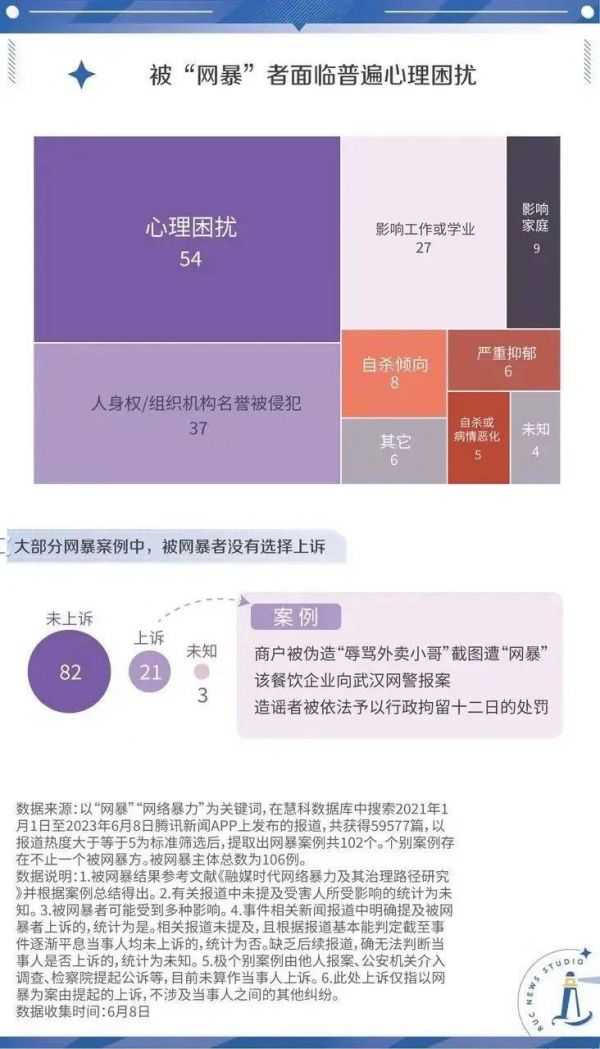 我们编码的106个被网暴对象中,也只有21人主动报案或起诉,占比不到20%。