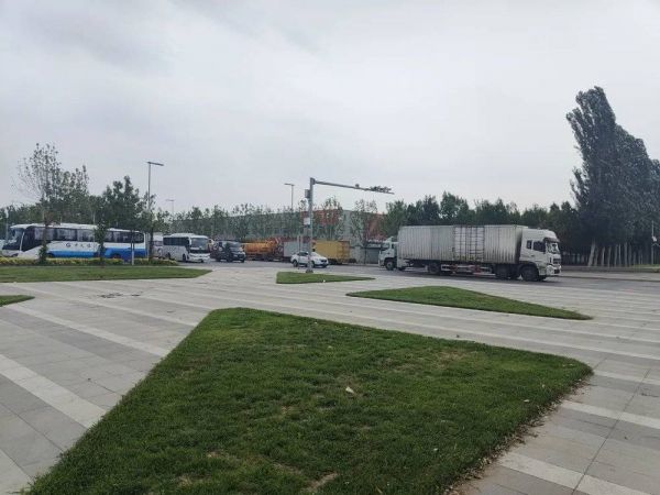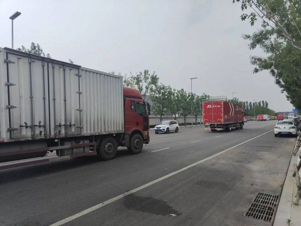 分拣中心不断出入的快递货车