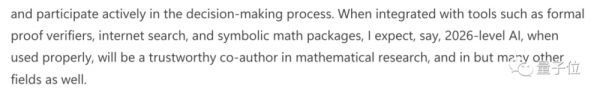 当与正式证明验证器、互联网搜索和符号数学软件包等工具整合时,我预计,例如2026年水平的AI(如果使用得当)将成为数学研究领域以及许多其他领域值得信赖的合作者。