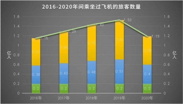 10亿人的数字没有权威出处,但得到业内认可。航旅纵横数据显示,2016~2020年间,每年民航出行的旅客人数在1.15亿到1.53亿人上下。剔除同一旅客多次乘机的情况,这5年约有3.4亿旅客乘坐过飞机,因此“10亿中国人没有坐过飞机”的说法并不夸张。