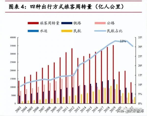 不过航空在公共出行占比逐年提高,从本世纪初的9%大幅提升至2020年的33%,且增速最快。2018年起民航超过公路,成为第二大出行方式。