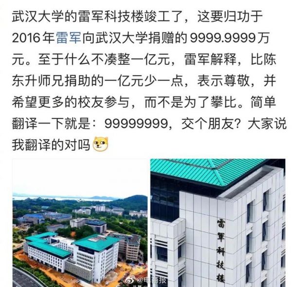 比一个小目标要少一块,武大雷军科技楼正式落成……