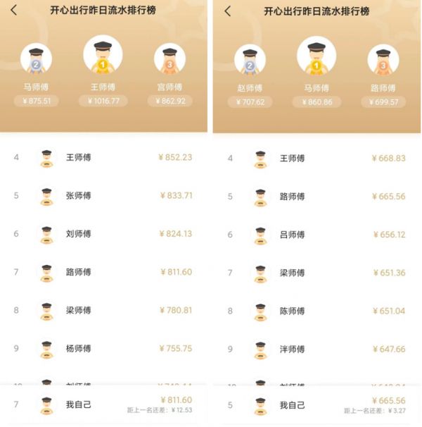 路广偶尔会上榜网约车平台济南地区作日流水榜单。榜单上,日流水最高的师傅可以跑到一千多,第十名的流水一般在六七百以上。受访者供图