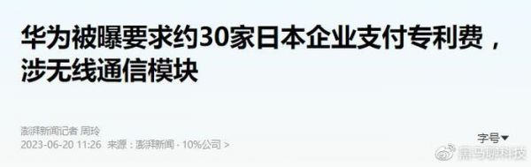近日,据日经新闻报道,华为正在向大约30家中小型日本公司收取使用专利技术的许可费。