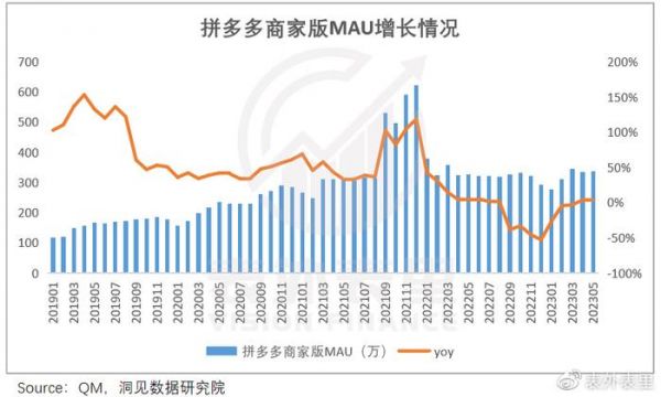 而可以看到,2022年1月之后,拼多多商家版的MAU增速已经出现放缓趋势,商家的观望态度不言而喻。