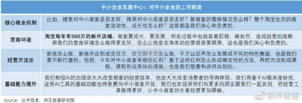 除此之外,上述说过其还成立中小企业发展中心,工作职责覆盖中小商家“痛点”,目前已经囊括了1688、淘特、服饰行业等渠道的资源。