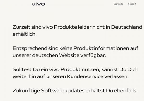 值得一提的是,vivo 仅在一周前刚刚宣布暂停其在德国的销售,而 OPPO 德国官网也已经几乎清空。在 vivo 德国官网上的公告信息是这么写的:“不幸的是,vivo 产品目前在德国无法获得,因此,我们的德国网站上没有产品信息。如果您使用的是 vivo 产品,您仍然可以依靠我们的客户服务,您还将收到未来的软件更新。”