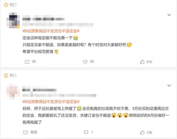 此前,B站就曾因为预售商品发货慢且不退定金,被用户投诉推上热搜。“会员购”风评急转直下。